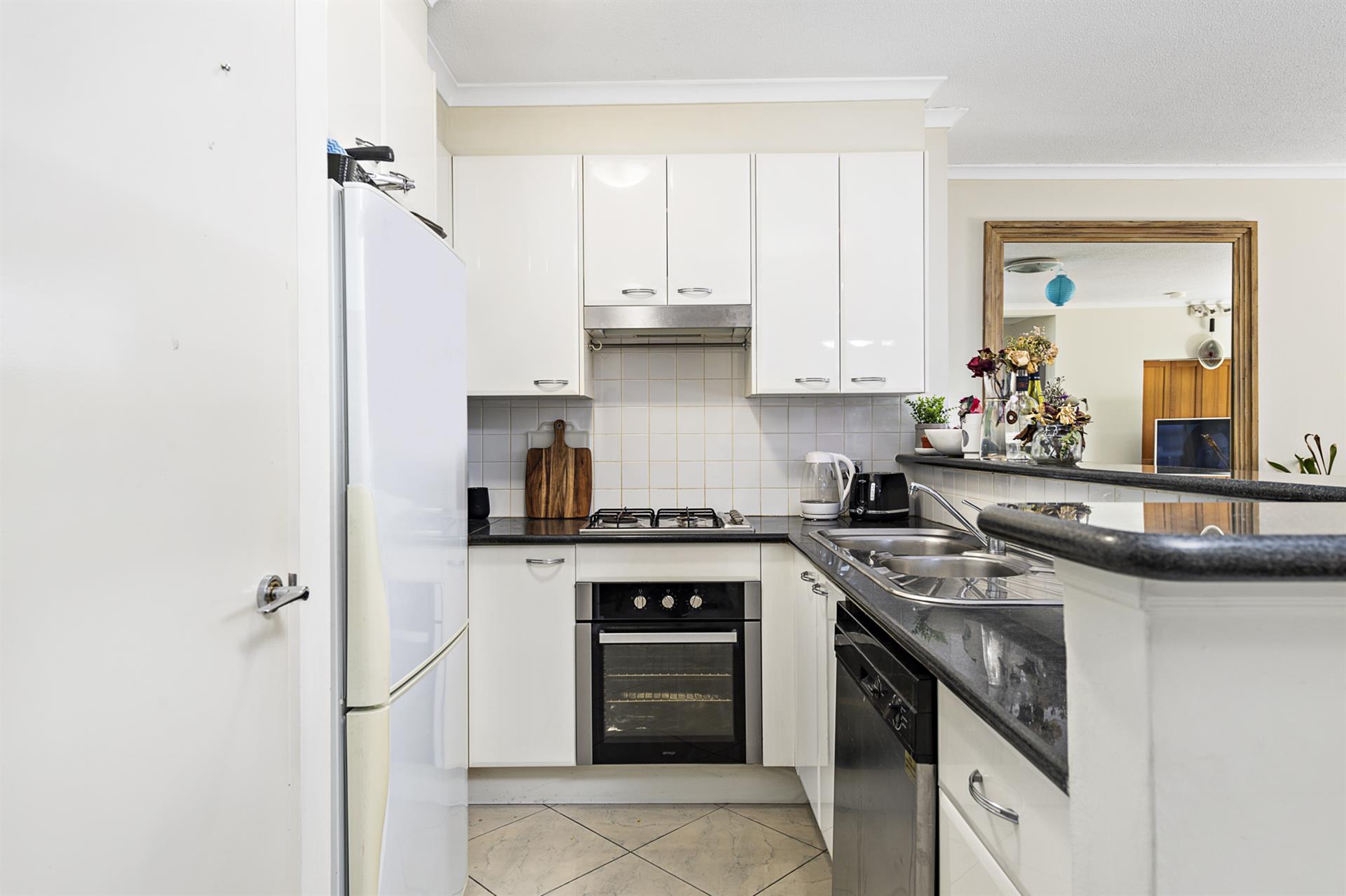* Open plan living modern kitchen complete with granite benchtops, stainless steel appliances including dishwasher and gas cooking with pantry.